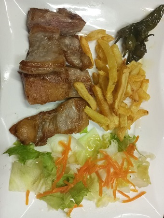 *Solomillo de ternera a la plancha con pimientos asados.....(18€).
